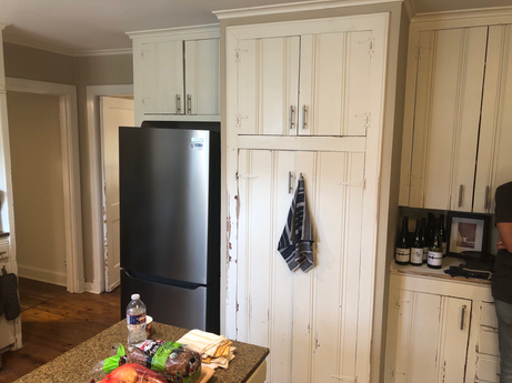 This beautiful kitchen got a fresh update with custom cabinets, backsplash, paint, and some floating shelves.​​